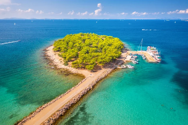 Stop at a vibrant coral reef for snorkeling.